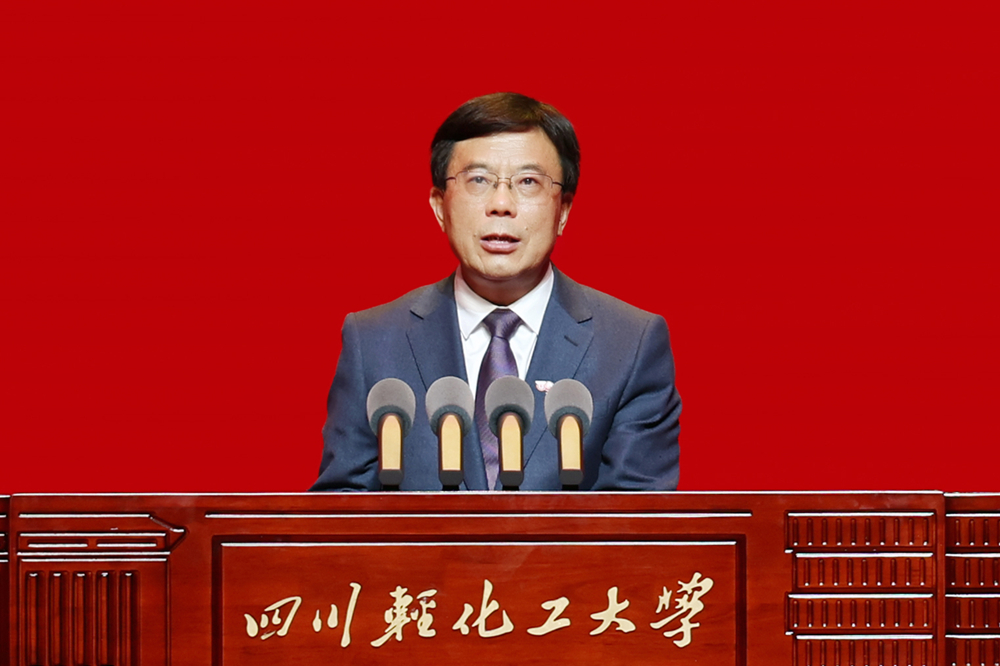石钢在致辞中以三句深情祝愿,回顾市校风雨同舟六十载,展望携手共赢新篇章。第一句话,六十载风雨兼程,祝愿四川轻化工大学赓续前行、一路奋进;第二句话,六十载风雨同舟,祝愿四川轻化工大学情谊永驻、一路同心;第三句话,六十载风华正茂,祝愿四川轻化工大学逐梦未来、一路芳华。面向未来,他希望学校坚守育人初心,落实立德树人根本任务;擦亮特色优势,做强“盐氟化工”“固态酿造”等品牌;打造校地合作典范,完善产教融合机制。石钢表示,自贡正深入实施“四大战略”,加快振兴步伐,将全力支持学校博士点建设,携手谱写市校共赢的崭新篇章。
